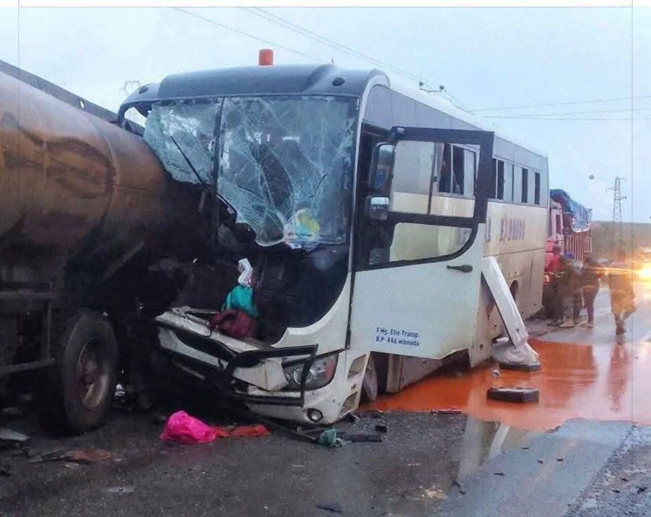 The collision occurred around 6:00 a.m. when a passenger bus traveling from the West Region toward Douala on the Bafoussam–Douala highway struck a stationary tanker truck carrying palm oil.